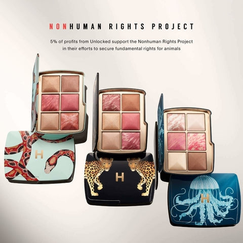 The Ambient Lighting Edit Unlocked collection includes limited-edition palettes featuring Snake, Leopard and Jellyfish that support the Nonhuman Rights Project in their efforts to secure fundamental rights for animals. Hourglass will donate 5% of annual profits from this collection to the Nonhuman Rights Project.