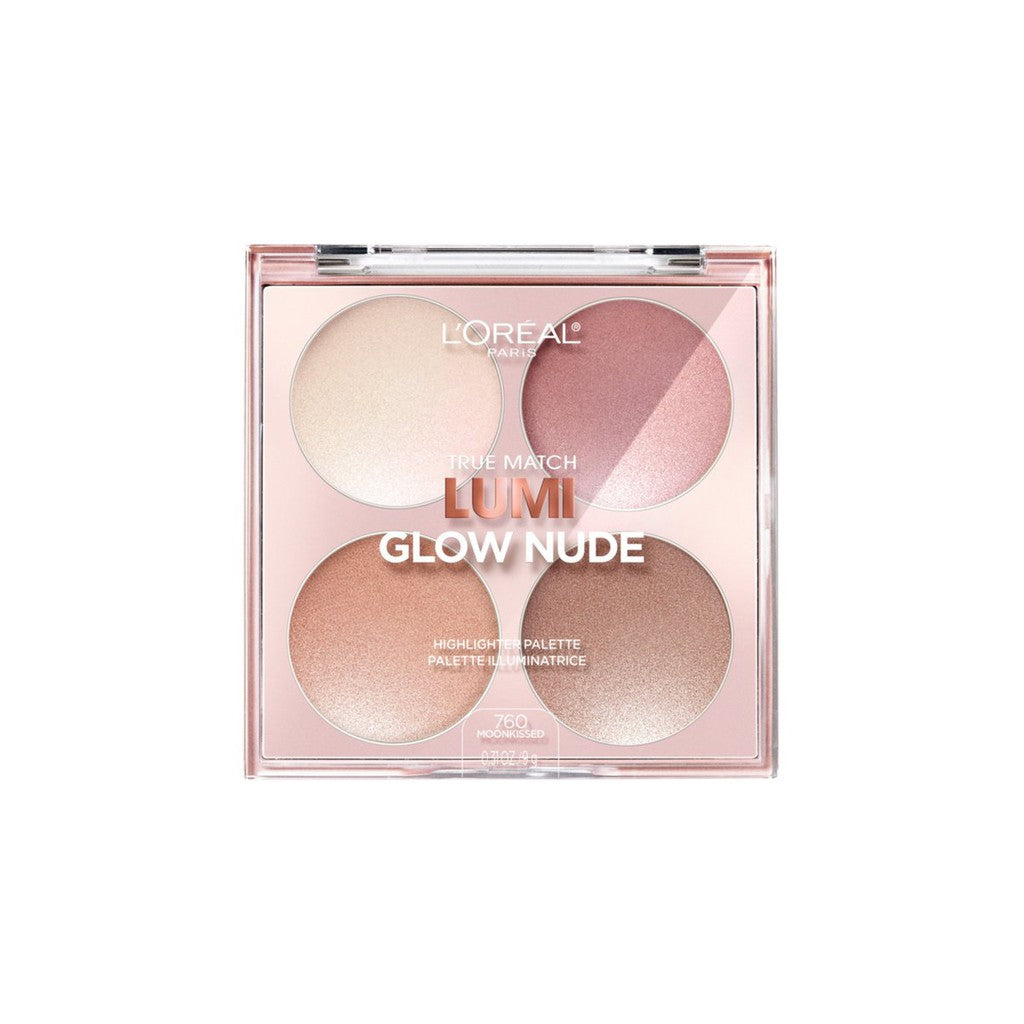 L'Oral Paris True Match LUMI Glow Nude highlighting kit creates the perfect multi-dimensional sculpted glow look. The collection of four highlighting powders in one makeup kit instantly awakens complexion. Layer or mix & match shades to create a multi-dimensional glow or wear them separately for a natural illuminated look. Moonkissed Palette: Moon - Glowing ivory with a pearl finish to highlight. Venus - Luminous rose with a radiant finish to blush. Jupiter - Radiant taupe with a natural finish to bronze. Twilight -Shimmery bronze with an illuminating finish to bronze. Sunkissed Palette: Starlight- Bright sand with a pearl finish to highlight. Sun - Soft peach with a radiant finish to blush. Dawn - Luminous amber with a natural finish to bronze. Saturn - Vibrant gold with an illuminating finish to bronze._x000D_