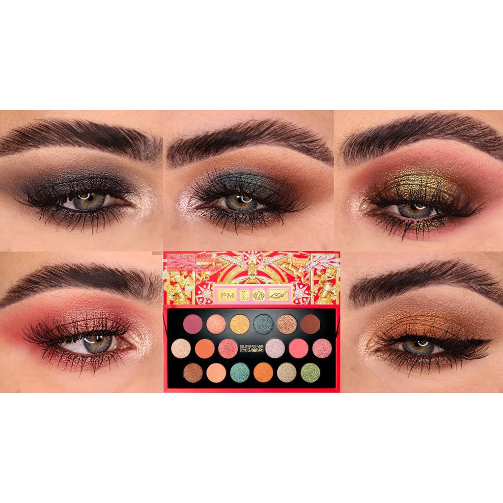 - 18 x 0.038 oz/ 1.1 g eyeshadows in Saturn Sunset, Rose Venus, Gold Galaxy, Noir Moon, Bronze Nova, Nocturne, Galactic Glow, Sunrose Amber, Lotus Luxe, Lunar Haze, Electrique, Heavenly Body, Bronze Eclipse, Solar Flare, Nirvana, Corrupt Copper, Palladium, Citrine Envy