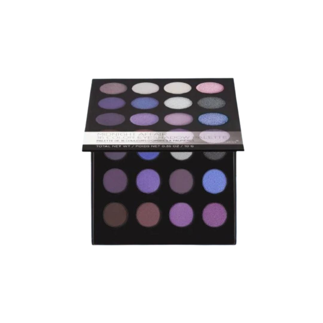 Emphasize your eyes with our Midnight Affair 16 Shades Eyeshadow Palette, a versatile collection of cool-tones mattes, satins and shimmers. The on-trend shades are ideal for creating elegant day-to-night looks, including striking smokey eyes, by blending, layering or applying individually.