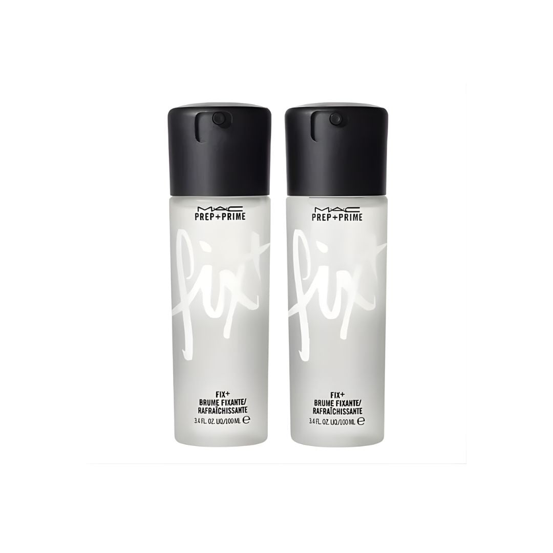 A limited-edition set featuring a pair of MAC's magical four-in-one mega-multitasker Fix+ Setting Spray. This lightweight mist of water is packed with vitamins and minerals, and infused with a blend of green tea, chamomile and cucumber to gently soothe and refresh skin. It helps improve the quality of your makeup for up to 12 hours.