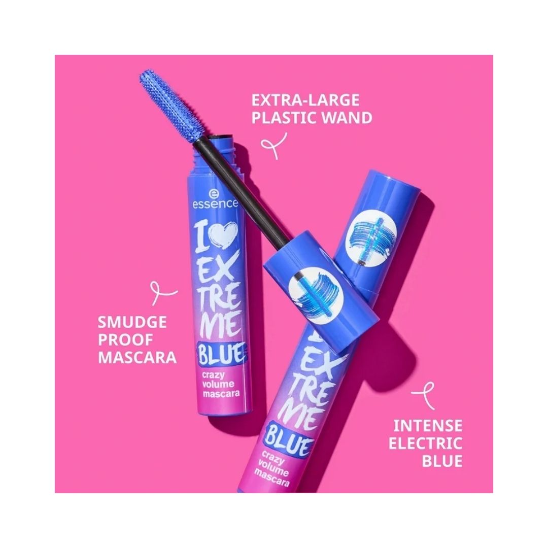 Get ready to stand out with essence I Love Extreme Blue Crazy Volume Mascara. This eye-catching electric blue mascara adds a pop of color to your eyes. With extreme volume and intense pigment, it's perfect for making a statement and elevating your eye makeup game.