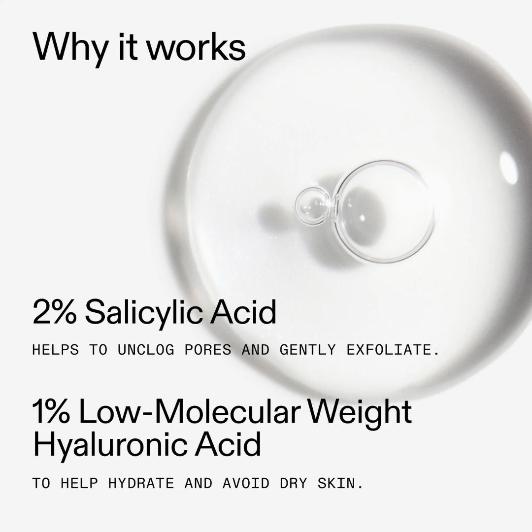 This BHA serum contains 2% Salicylic Acid which means it can penetrate deeper into your skin, helping to unclog pores. BHA products can help fight blackheads and breakouts and reduce pore appearance.