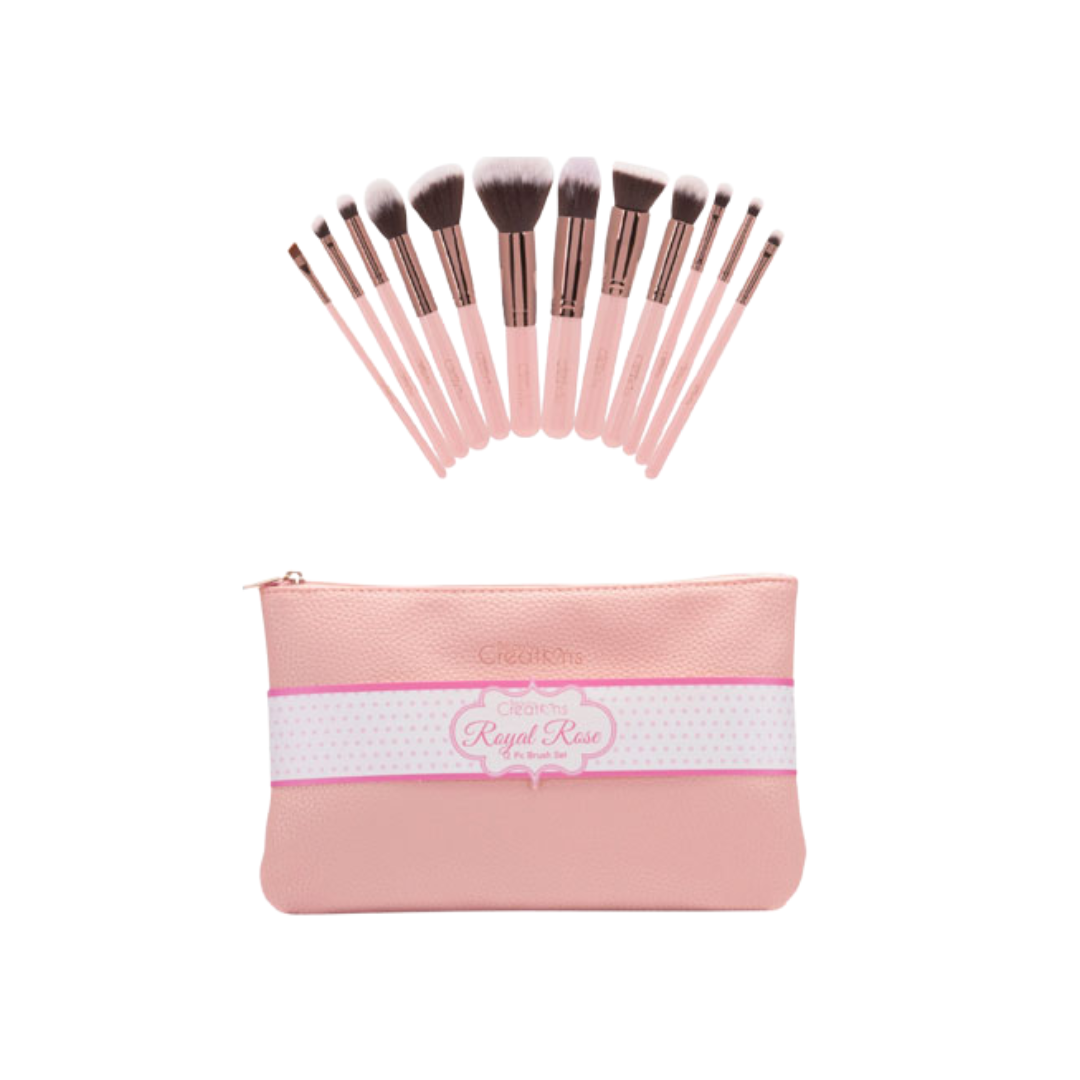 BEAUTY CREATIONS 12PC ROYAL ROSE BRUSH SET (PINK) : The Beauty Creations rose gold brush set comes with eleven professional quality brushes which include all of the basics for easy application, whether you are using professionally or at home.